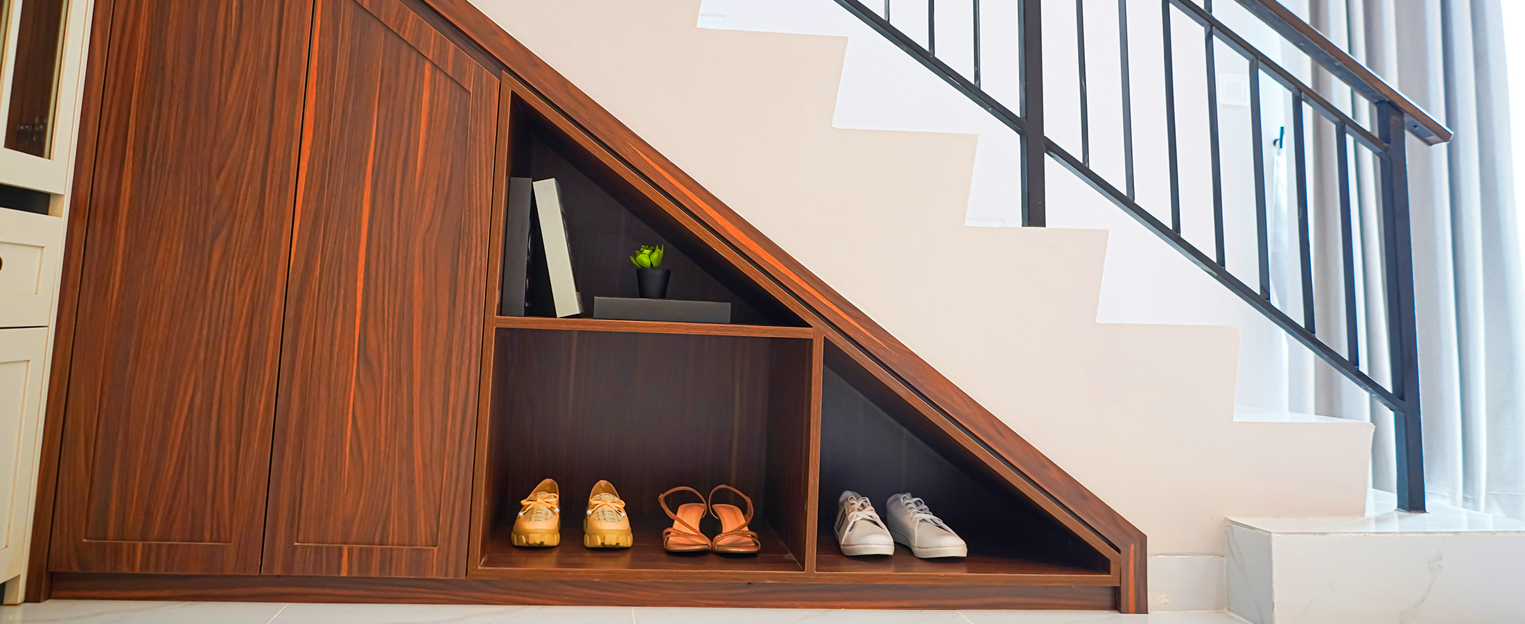 Der Platz unter Ihrer Treppe bietet wertvolles Potenzial. Mit maßgefertigten Treppenunterschränken schaffen wir intelligente Stauraumlösungen, die sich perfekt in Ihr Zuhause einfügen – funktional, hochwertig und individuell geplant. Jeder Zentimeter wird sinnvoll genutzt, jedes Detail präzise umgesetzt.